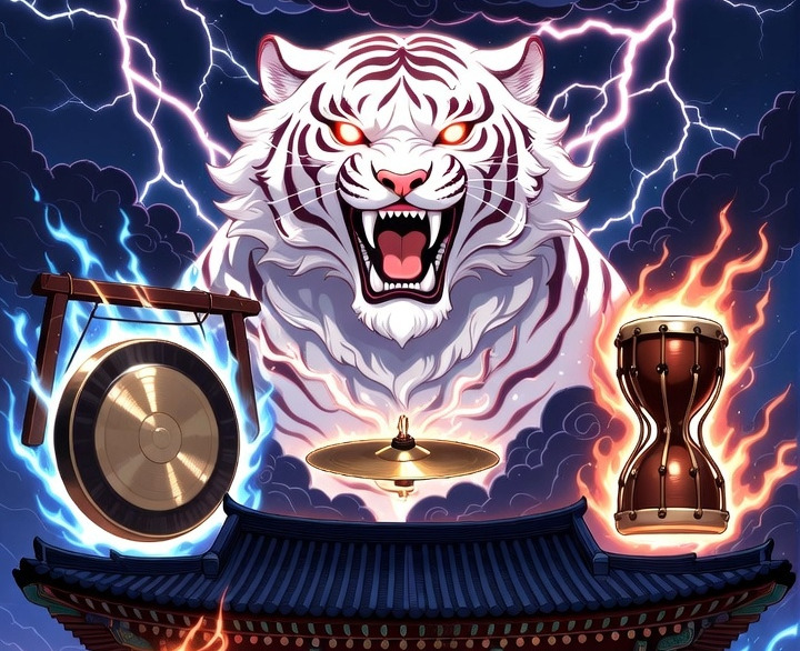 오래된 꽹과리와 징, 북, 장구. 그리고 그 악기들 사이에서, 이상한 진동이 느껴지기 시작했다. 잠잠했던 악기들이 가볍게 떨리며 아주 작은 소리를 냈다. 마치 오랜 세월 잠들어 있던 무언가가 깨어나려는 듯.
